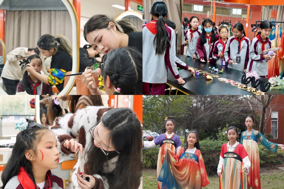 《电影化妆》课程带领学生们回到盛世唐朝,体验具有古风特色的服饰妆容。唐朝女子的服饰夸张开放,浪漫中不失风度,夸张中不失细节;唐朝的妆发也别具特色,不论是妆容的多样性还是发饰发髻的多元化都给后人留下了宝贵的审美财富。学生们现场体验了唐朝妆容,了解了化妆技巧;还穿上了华美的唐朝服饰,戴上了精美的发饰发髻,沉浸式体验了影视妆造的全流程,也对中国唐朝历史、古代文化有了深刻、形象的认识。