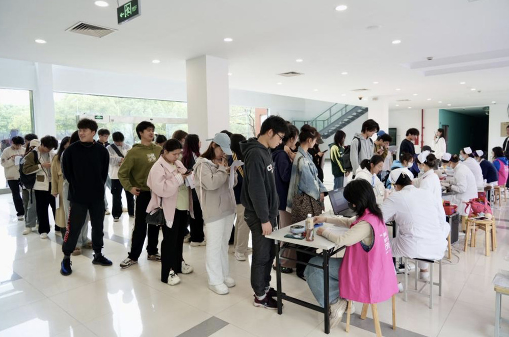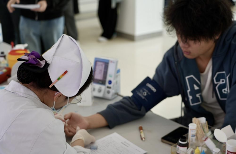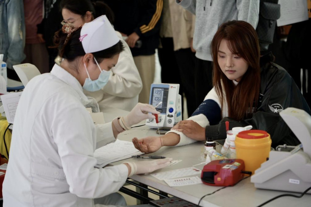 完成信息登记后,同学们在志愿者的带领下前往学校一楼大厅进行预检。预检包括血压、血型、乙肝、表面抗原及血色素等项目的检测,这一环节至关重要,它确保了每位献血者都处于适宜献血的健康状况。医护人员的专业和细心,让每一位参与的学生都感到安心和信任。