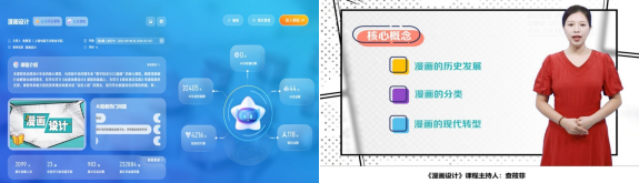 《漫画设计》是动漫专业核心课程,本课程紧扣行业职业能力要求,以“心理浸润、以美润心”为目标,实现技术创新与人文关怀双向赋能。课程融合治愈系漫画与AI动态漫画、VR漫画等前沿技术,迭代升级后开放六期,累计学习人数达2098人。课程打造“两类八库”资源体系,引入AI学伴“沐夏”提供个性化辅导,实现思政与数智教学有机融合。组建“双师型+专家型”师资团队,推动技术教学相长。师生团队完成30余本漫插画作品,赋能课题产值达1000万码洋,实现教学与产业价值双突破。