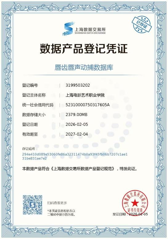 马年新春,上海电影艺术职业学院标志性成果唇齿唇声动捕数据库在上海数据交易所成功登陆并挂牌。这也是学校继舞蹈动捕数据库(全国首个高校数据产品)后又一次成功登陆上海数据交易所。