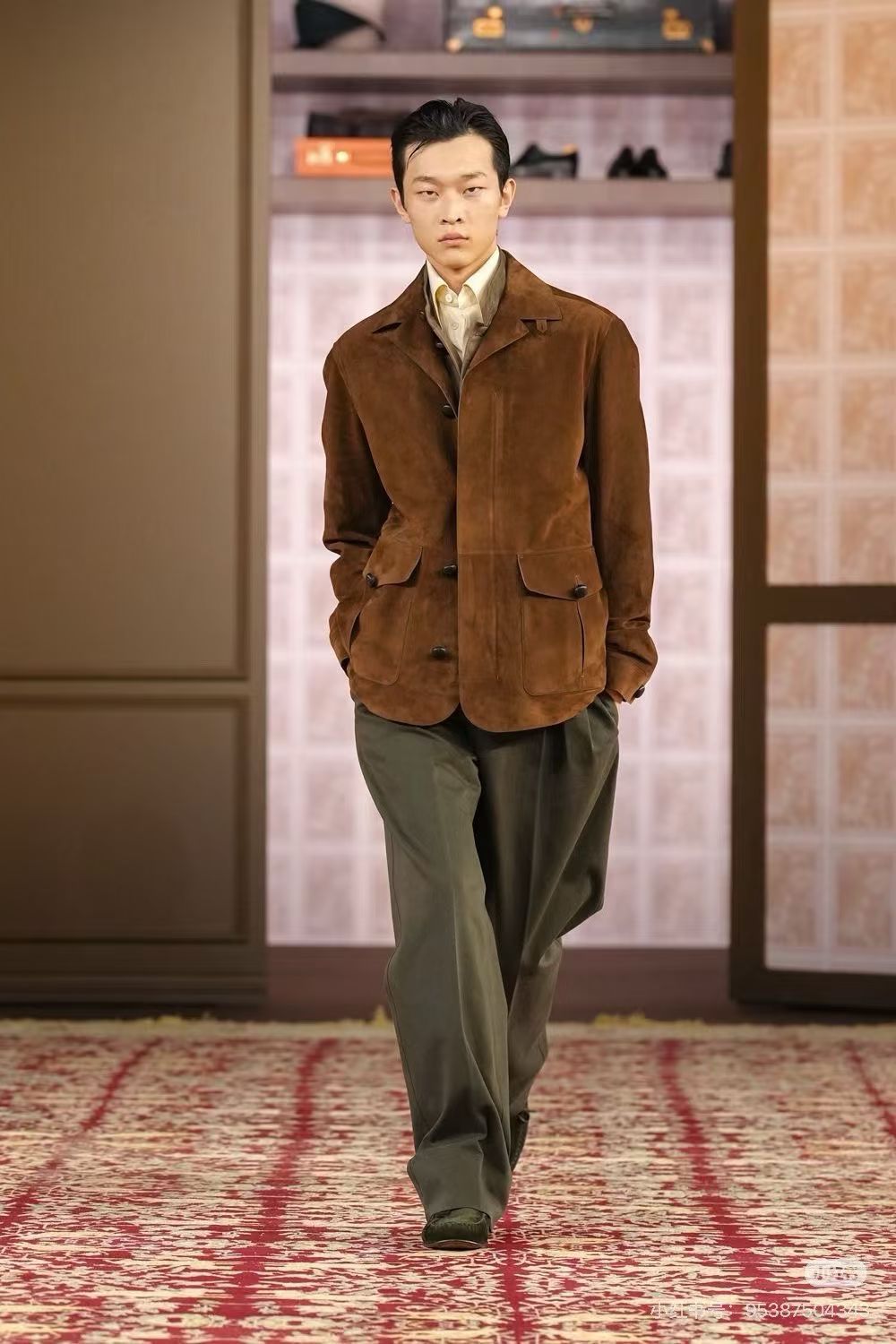 面对男装秀场对节奏、状态和气场的要求,他以自然利落的表现完成了对品牌造型的呈现,也展现出新生代时尚表演人才的成长潜力。