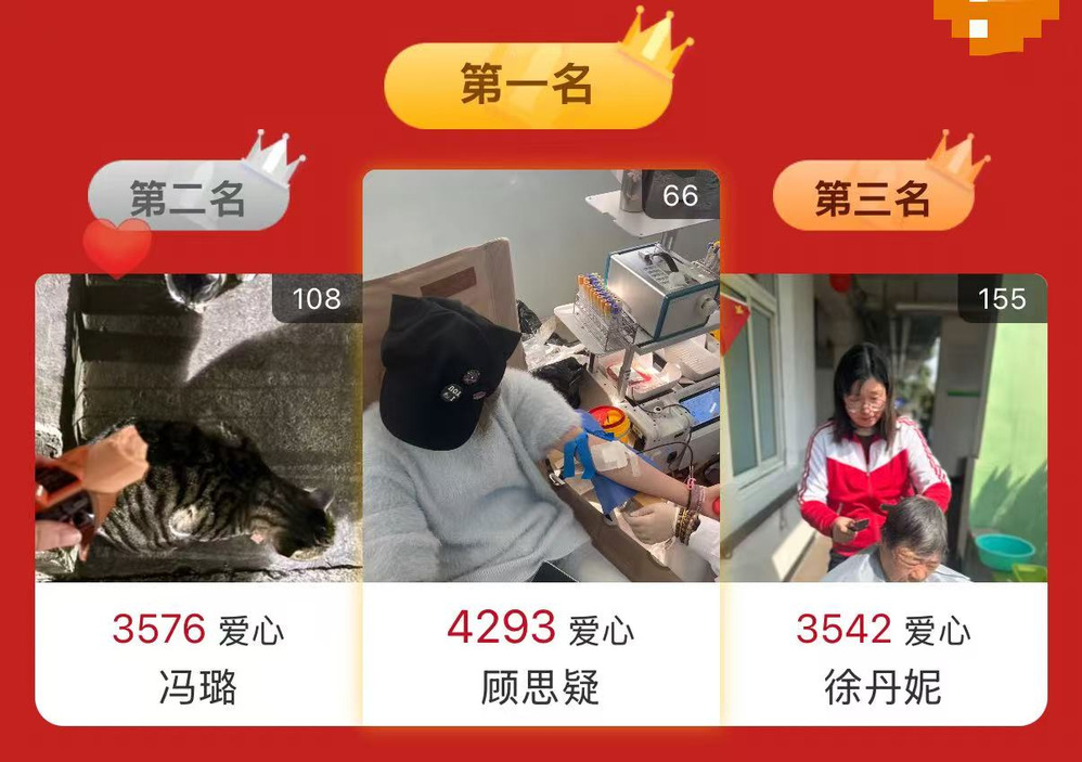 活动面向全校学生,创新采用“实践记录+爱心传递”的双线模式,链接校园文明实践与乡村留守儿童关爱,让志愿力量落地生根。顾思疑同学参与无偿献血,冯璐同学喂养流浪猫,徐丹妮同学投身社区关爱老人活动,颜铭同学践行环保公益,周长政、王怿文同学则以绘画专业赋能志愿服务……上电青年在广阔的社会实践课堂中自主参与、亲身体验,用镜头定格温暖,用文字记录感动,让善意在校园中传递、在社会上回响。线上平台同步进行作品展示与爱心值积累,同学们通过转发分享扩大公益影响力,实现“一次参与、多方受益”,让青春善意触达更远地方。