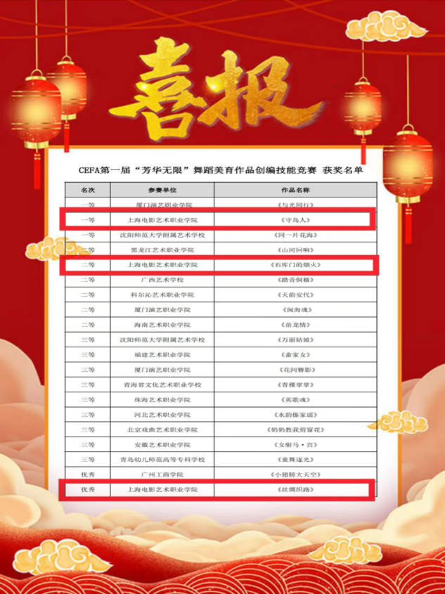 喜报|上海电影艺术职业学院在CEFA首届“芳华无限”舞蹈美育竞赛...
