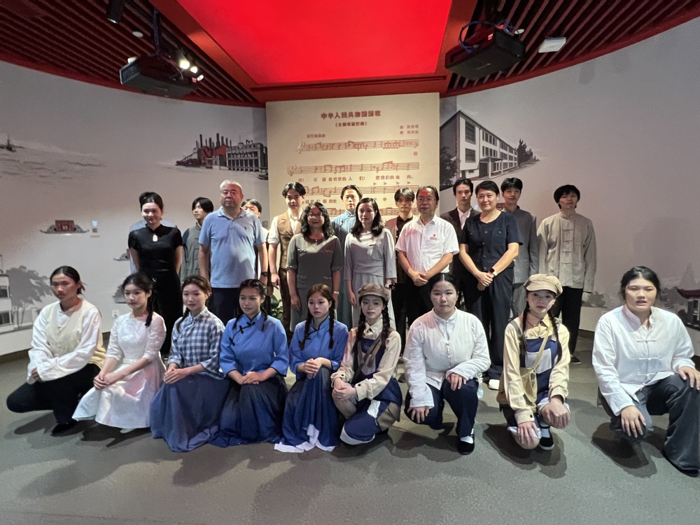 作为承办单位之一,学校深入探索“艺术+思政”育人新路径,依托专业教学优势,师生全程参与剧目创排与演出。通过实景沉浸、边走边演的创新形式,将《义勇军进行曲》诞生的历史过程转化为鲜活思政课堂,不仅面向大学生,也为广大中小学生提供了生动的爱国主义教育实践场域,生动诠释抗日民族统一战线的伟大精神内涵,实现情感共鸣与价值引领的双重效果,展现了我校师生深厚的艺术素养与社会责任担当,彰显了课程思政与红色文化融合育人的显著成效。