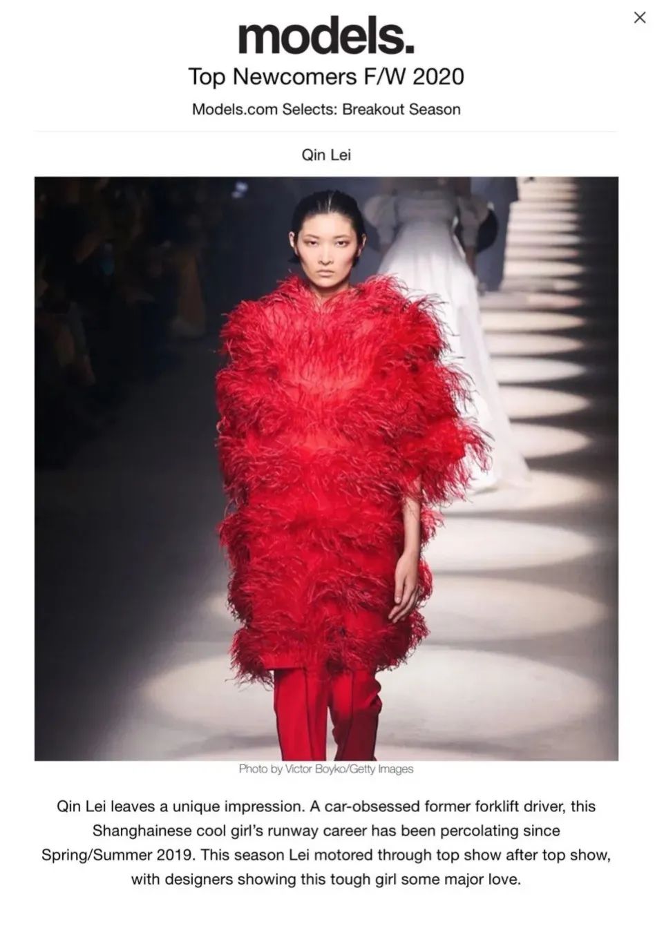 图2 秦蕾入选MDC 2020FW Top Newcomers