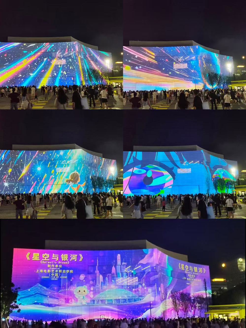继斩获 BPI 照明设计学生竞赛佳绩后,上海电影艺术学院广告艺术设计专业再迎成果落地 —— 此前获金奖的光影作品,近日在第二届上海国际光影节西岸大剧院完成建筑墙体投影,以 “星空与银河” 为主题,用数字视觉语言勾勒浩瀚星河与城市轮廓的交融之景,既是专业教学成果在国际文旅活动的亮相,更彰显专业对接上海数字文旅产业、培育新质人才的实践初心。