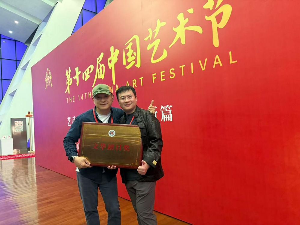 近日,由文化和旅游部主办的全国舞台艺术领域最高荣誉之---文华奖评选结果正式揭晓。我校舞台美术设计专业带头人孔庆尧主任领衔创作的舞台美术作品《寻找李二狗》凭借鲜明的艺术特色、精湛的创作技艺,成功斩获“文华剧目奖”,彰显了我校在舞台艺术设计领域的教学实力与创作水平。