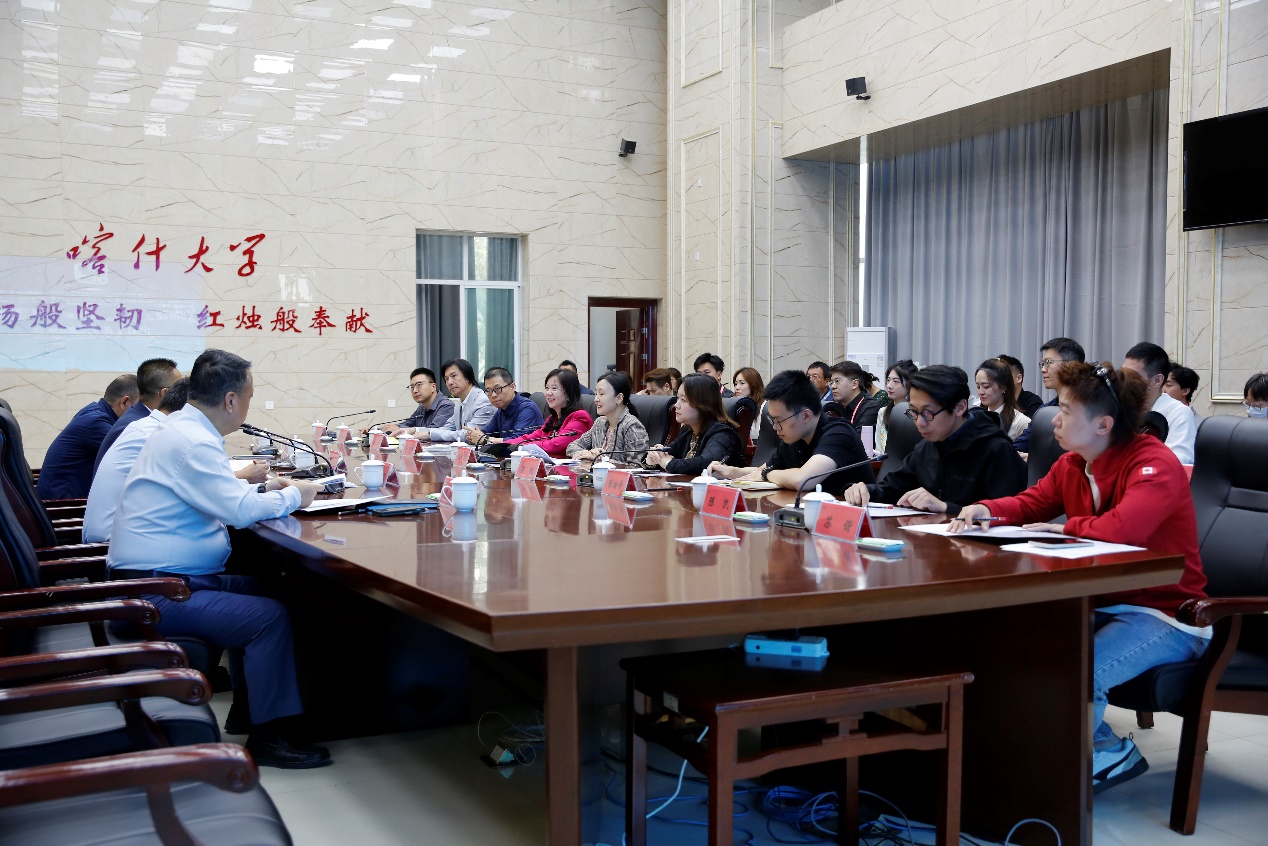 活动期间,带队教师苏锴还受邀参加喀什大学举办的两岸青年影像交流座谈会。会上,国台办港澳局局长张晗、处长张瀚铮及多地政府、高校代表百余人共同探讨了如何依托“一带一路”节点城市的区位优势,构建常态化的两岸青年创作交流机制。与会教师代表还分享了以影像创作为纽带、以情感共鸣为桥梁,推动两岸青年在技术协作与文化认同中深化融合发展的实践经验。会议结束后,当地学生向到场嘉宾献上民族特色的艾德莱斯绸巾,并表演传统舞蹈,进一步增进了两岸青年的文化交流与情感共鸣。