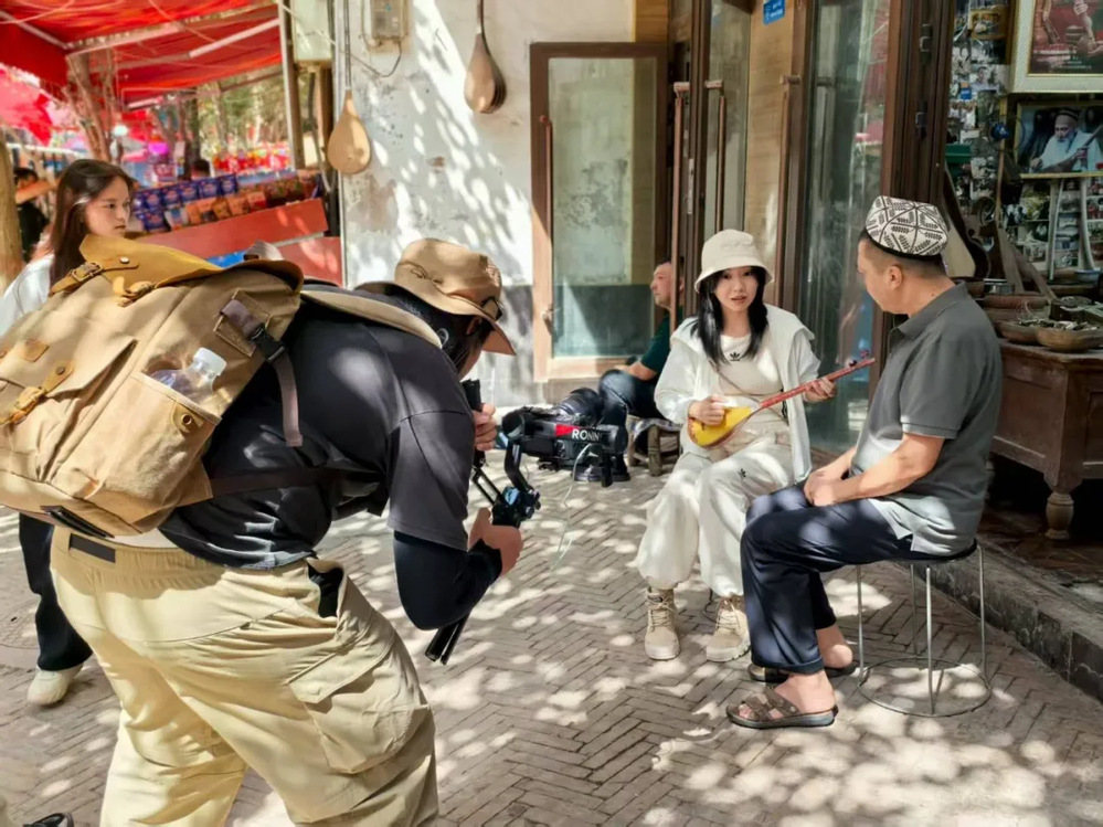 创作团队围绕“非遗手工、民族文化、生活习俗、基础建设、地域风情、美食文化”六大主题,在喀什古城、慕士塔格冰川公园、白沙湖等地开展系统性拍摄。在我校教师苏锴指导下,两岸青年通过分组协作、实地调研与镜头调度,全面提升策划、拍摄及表达能力。活动还邀请当地维吾尔族青年共同参与,使创作更加具有在地性与互动性。通过沉浸式体验,青年创作者深入感受喀什厚重的历史底蕴与多元文化,以影像讲述独具西域风情的人文故事。